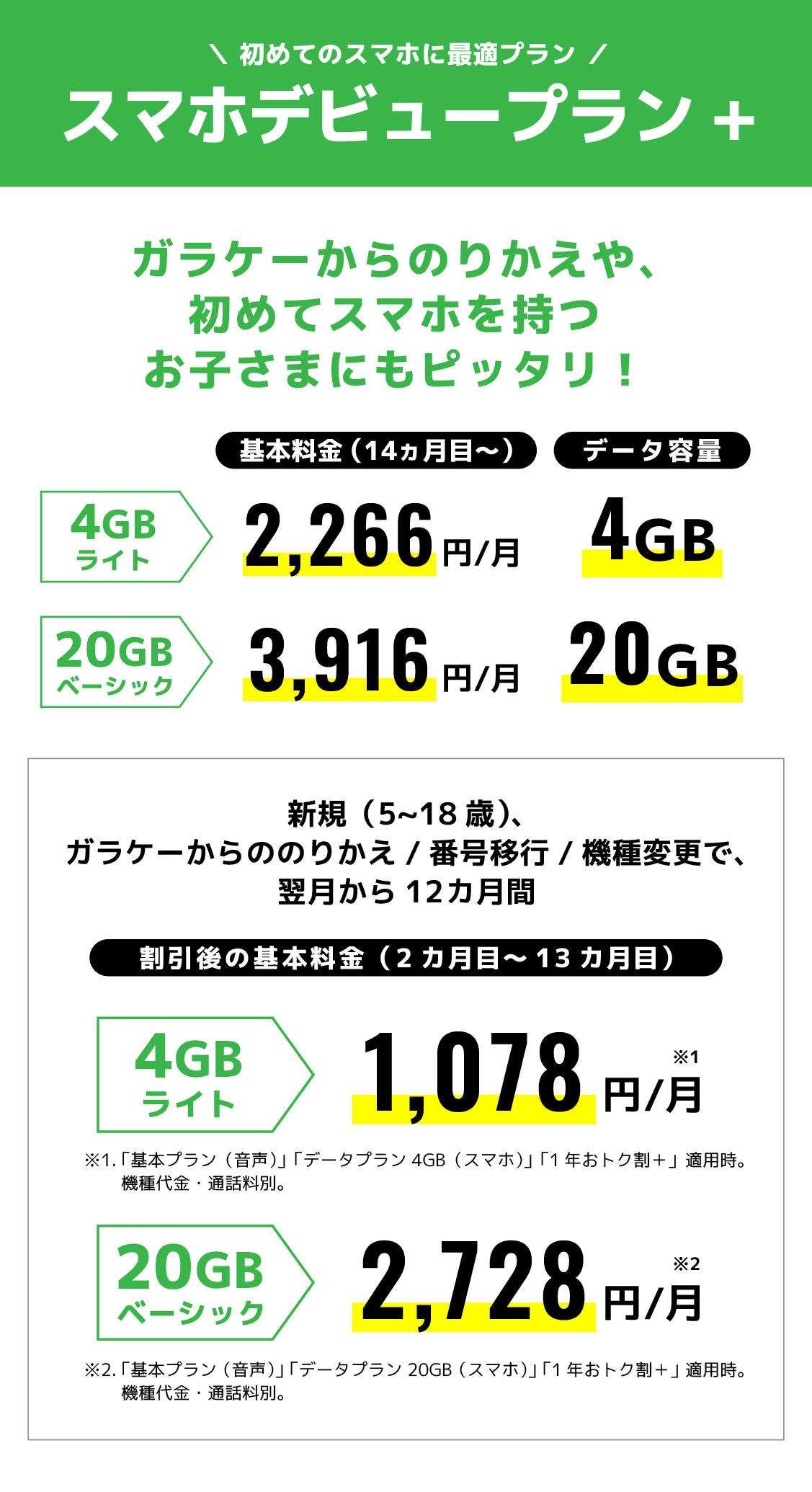【スマホデビュープラン+ ライト データプラン 4GB(スマホ)】